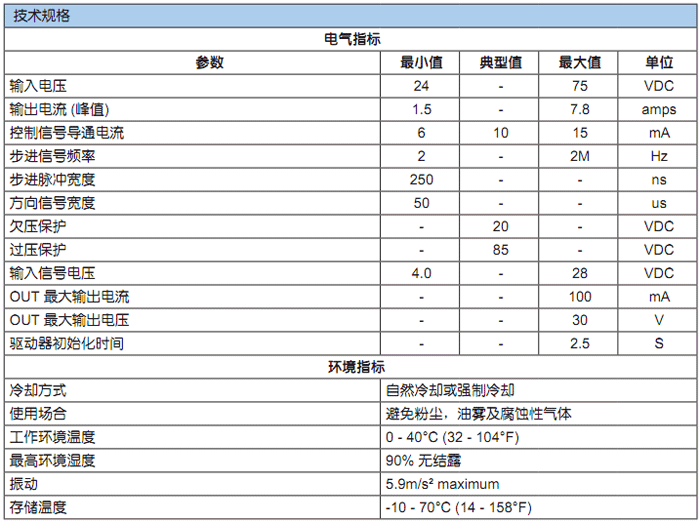 ? 3個(gè)數(shù)字輸入口:脈沖/方向/使能信號(hào), 5-24VDC, 光電隔離